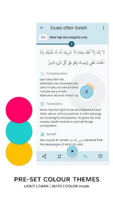 Furahia mpangilio wa kisasa na rafiki kwa mtumiaji, unaokuwezesha kufikia vipengele muhimu kwa urahisi. Kila Dua inakuja na usomaji wa sauti unaovutia, maneno ya Kiarabu yaliyoandikwa kwa herufi za Kilatini (transliteration), tafsiri kamili katika lugha saba kuu, na marejeo thabiti ya Hadith pale inapohitajika. Chagua kutoka fonti sita tofauti za Kiarabu, ikiwemo fonti ya Nurani, au uweke onyesho la Kiarabu pekee. Binafsisha uzoefu wako kwa kuchagua mandhari unayopenda kutoka kati ya ishirini zinazopatikana, na tumia mipangilio ya vitendo kuboresha safari yako ya kiroho.