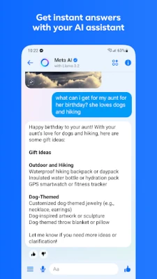 Messenger inapanua upeo wa mawasiliano yako. Pata majibu ya haraka na usaidizi wa kitaalamu kutoka kwa Meta AI, mwandamizi wako mahiri wa dijitali. Kutoka kujibu maswali tata, kutoa ushauri wa maisha, hadi kukusaidia na kazi za nyumbani au hata ubunifu wa picha na uhuishaji, Meta AI inasimama tayari kukuhudumia. Shiriki kumbukumbu zako muhimu kwa uwazi wa hali ya juu ukitumia picha zenye ubora wa juu na unda albamu za pamoja za video na picha kusherehekea matukio maalum. Pia, tuma faili kubwa hadi 100MB – iwe ni Word, PDF, au Excel – moja kwa moja ndani ya gumzo.