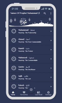 "Names Of Prophet Muhammad (ﷺ)" ni programu isiyo na matangazo inayokuwezesha kujifunza majina 99 matukufu ya Mtume Muhammad (ﷺ). Inatoa maana kamili na usomaji mzuri wa sauti kwa kila jina. Gundua utajiri wa "Asma ul Nabi" kwa urahisi na bila usumbufu.